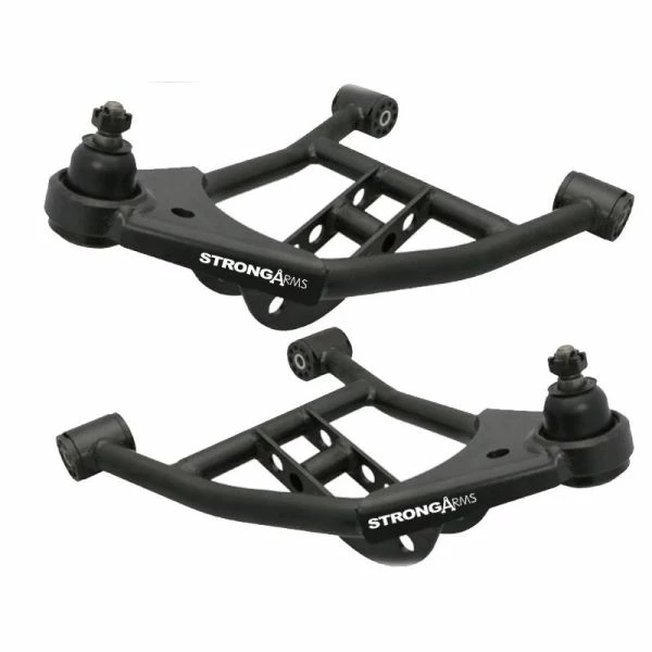 Design-The best way to design any component is to keep it simple. That is why Strong Arms™ are designed with as few components as possible. They are manufactured in house on 4 axis tubing bender that allows precise, repeatable bends that no other machine can achieve. Elegant tubing bends can be created that would otherwise require several separate welded components. The perimeter of the StrongArm is contoured to allow maximum wheel clearance and turning radius. Double sheer lower shock mounts provide a strong attachment for the Shockwave or Coil-Over.